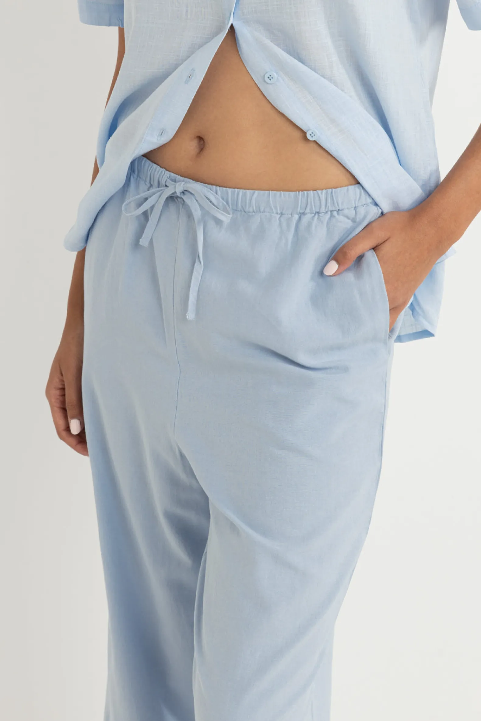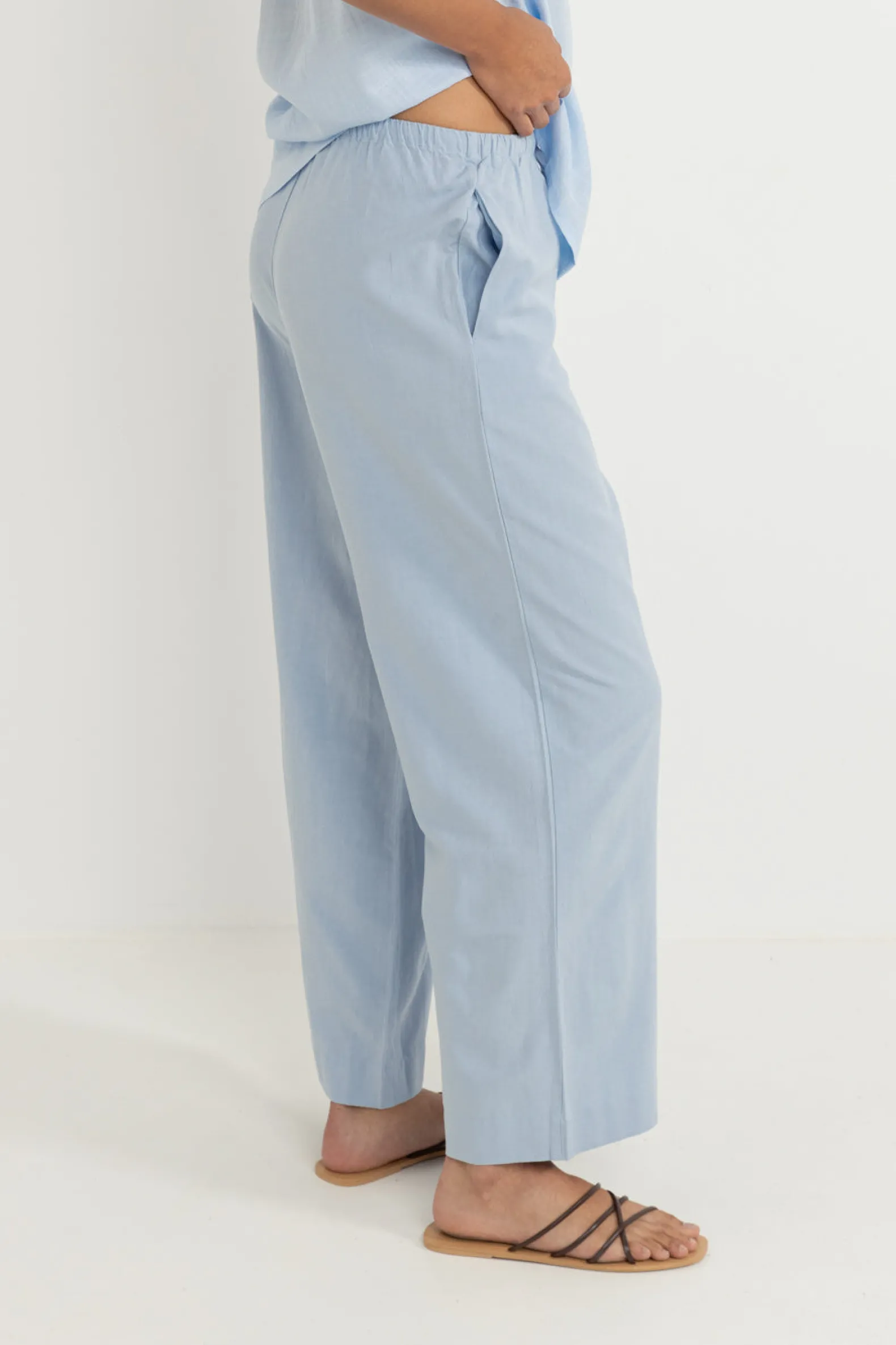 For soft sunny days moving through the cool breeze, the Classic Drawstring Pant is cut from a breathable blend of ramie fibres with an elasticated waist front, and channelled drawcord in a lovably comfortable wide fit.