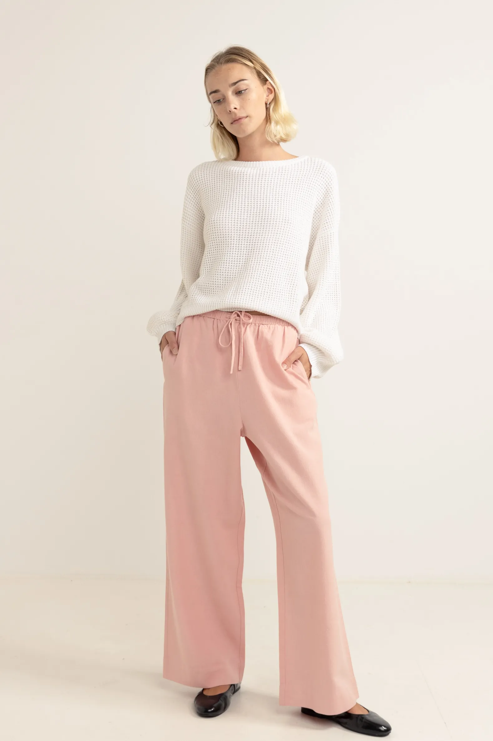 For soft sunny days moving through the cool breeze, the Classic Drawstring Pant is cut from a breathable blend of ramie fibres with an elasticated waist front, and channelled drawcord in a lovably comfortable wide fit.