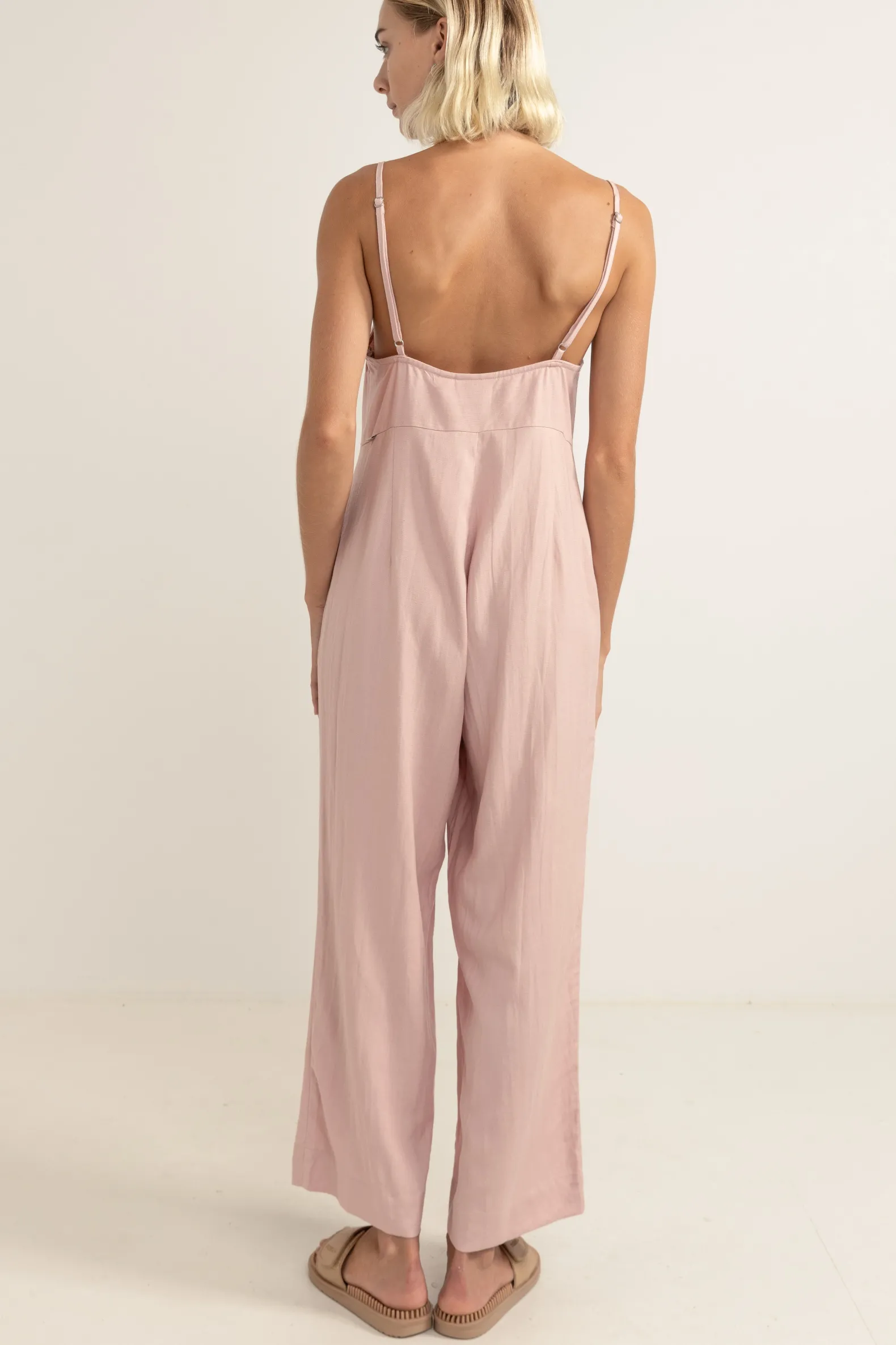 For soft sunny days moving through the cool breeze, the Classic Jumpsuit is cut from a breathable rayon blend, an easy wearing clean and stylish look to wear through the seasons.