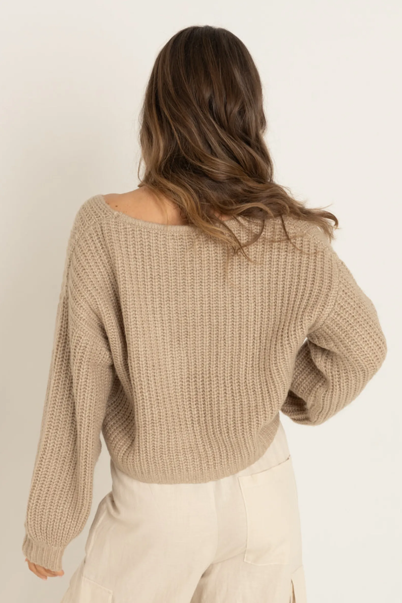 Cozy up in the Eadie Oversized Knit Cardigan. This mid-weight, button-up cardigan offers a relaxed, oversized fit and an artisanal knit texture—perfect for layering on breezy coastal days.