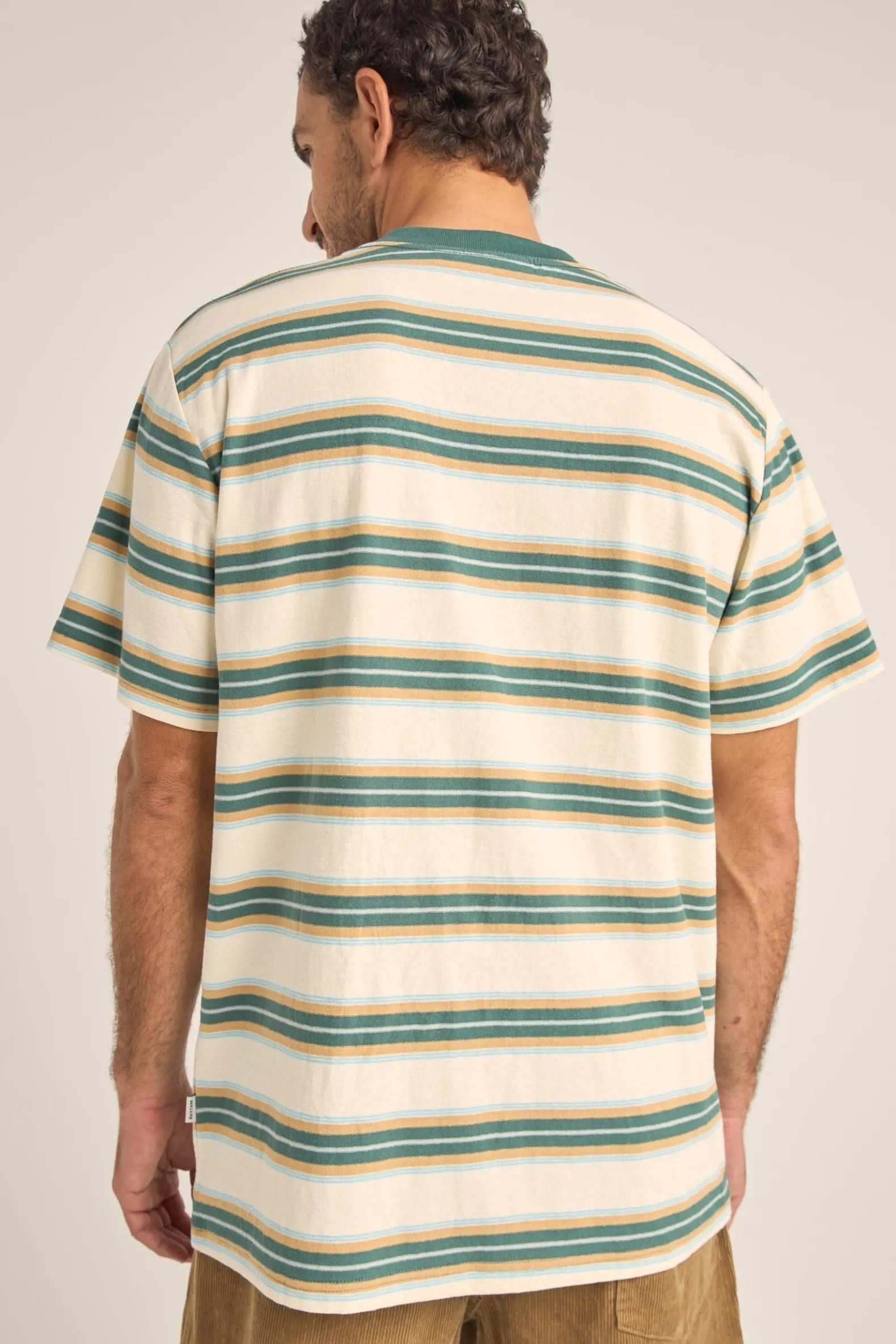 Adorned with an embroidered logo that whispers stories of seaside adventures, the Vintage Green Everyday Stripe SS T-Shirt is a melody of comfort woven into yarn dye stripes. Made from 100% cotton, every thread speaks of softness, brought out by the wash that gives it a hand feel as gentle as the morning tide.