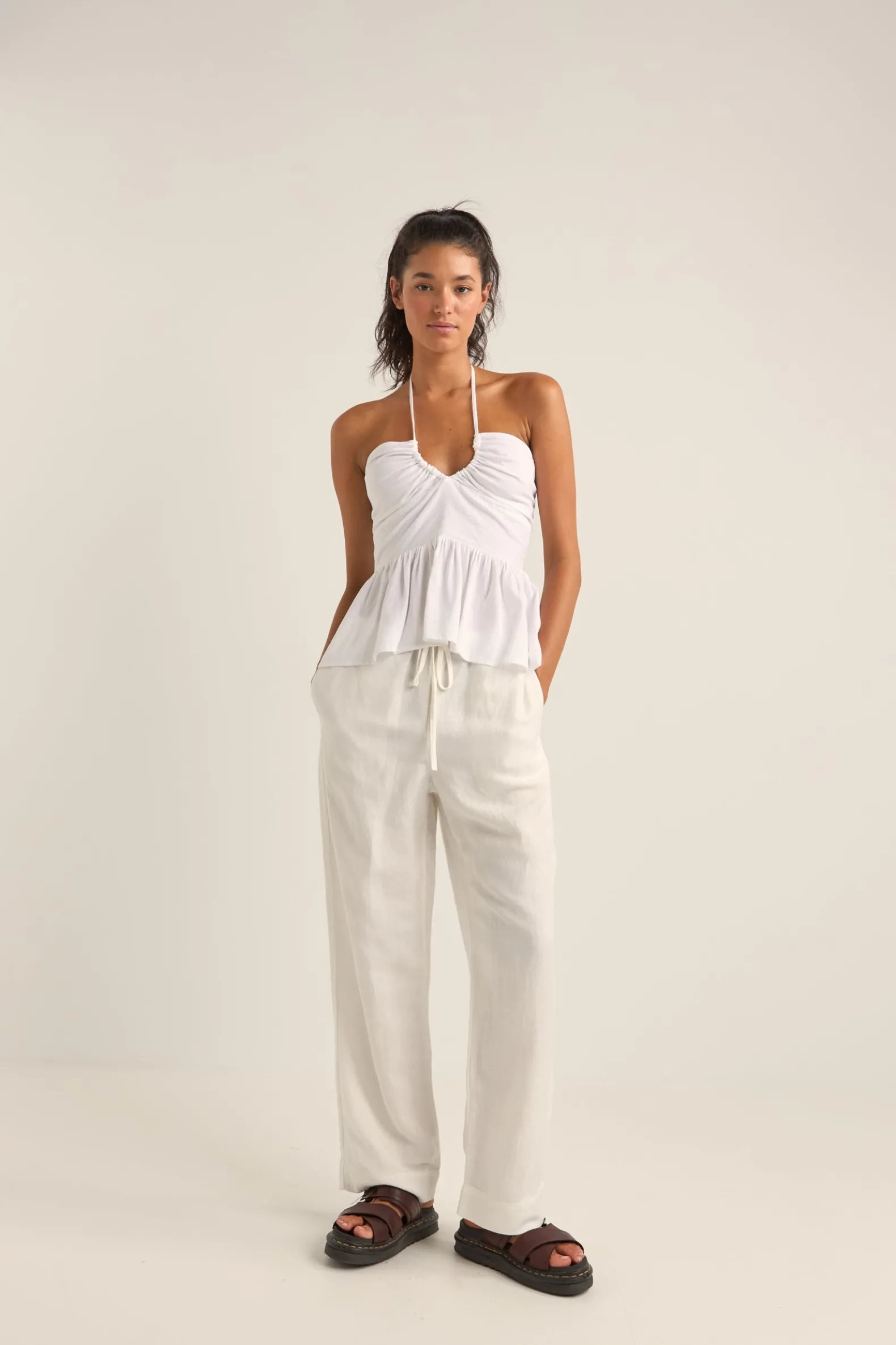 The Harper Top is made from the same silhouette as our Harper Halter Mini Dress, and a must have for lovers of the halter shape. With a fitted bodice and flowy skirt, the Harper Top is a playful addition to our fashion tops assortment that’s sure to be a constantly reached item for this season.