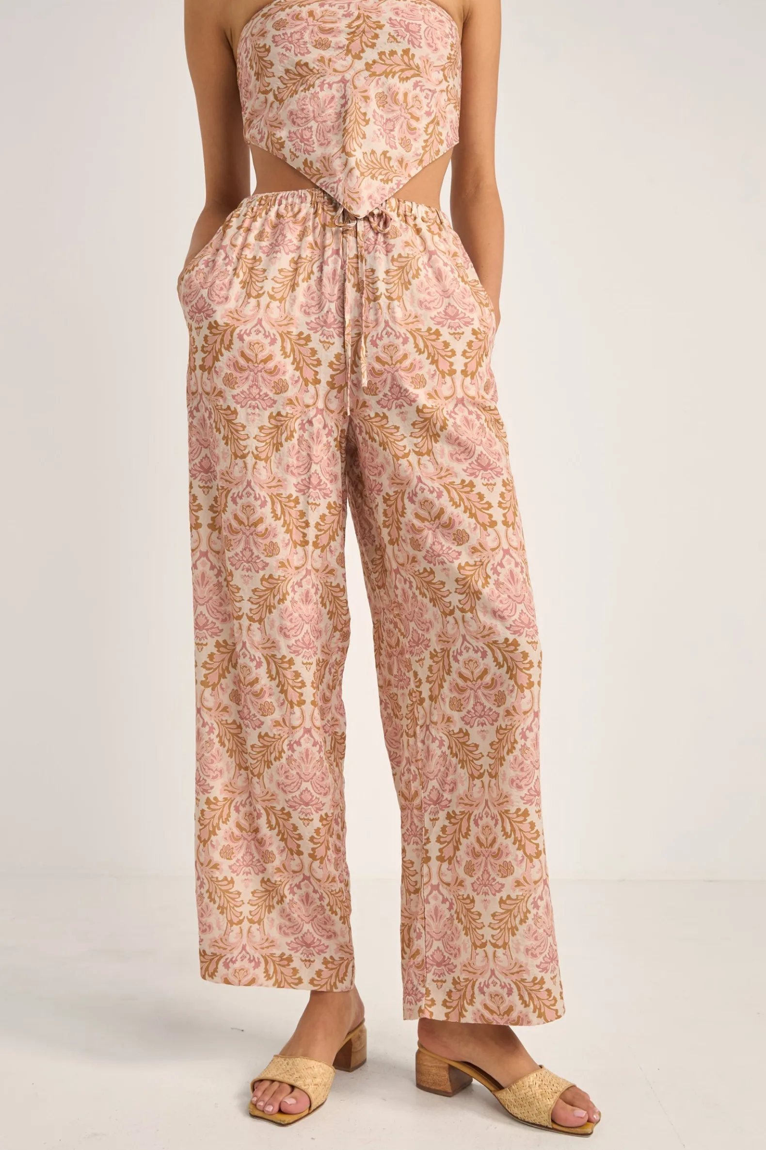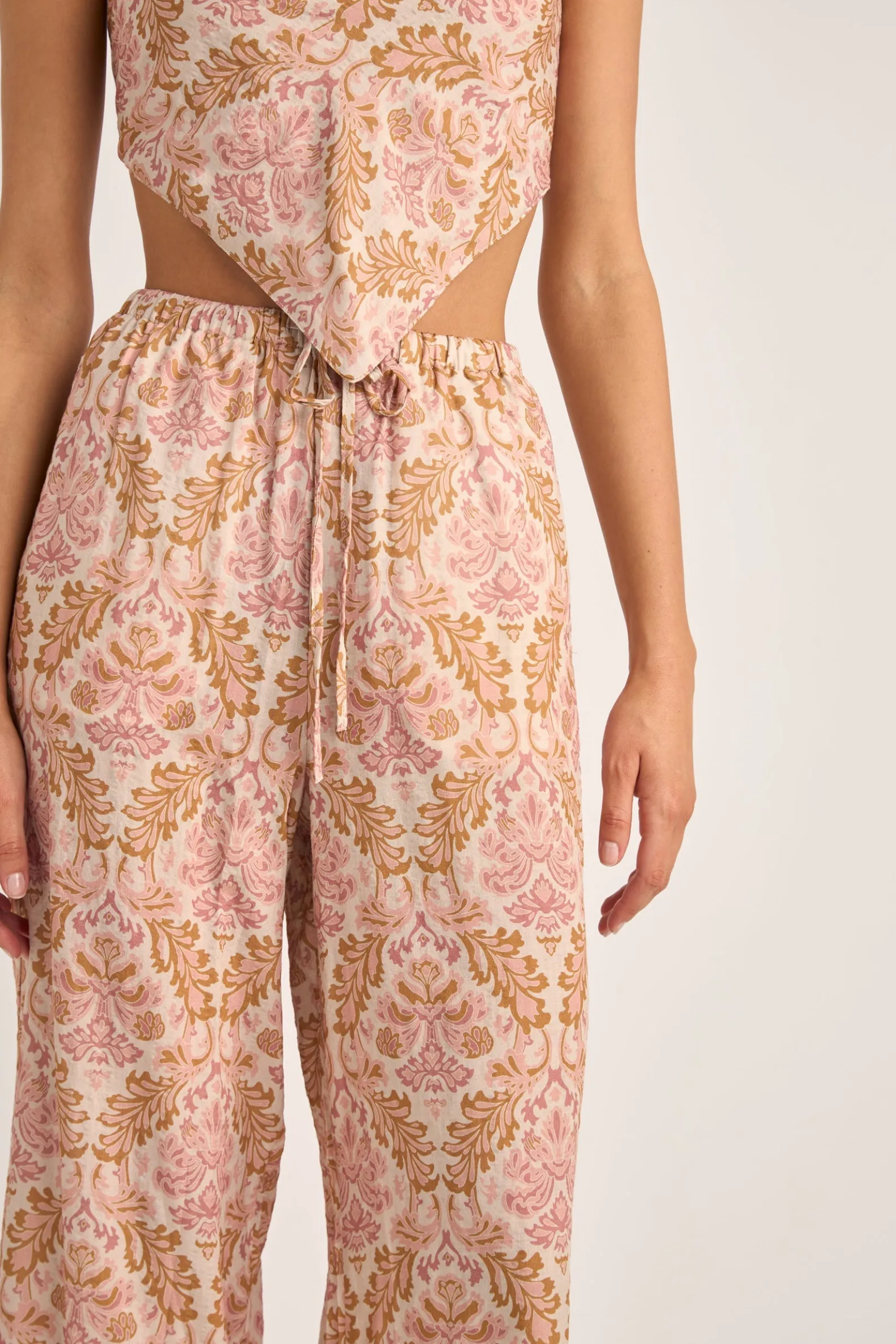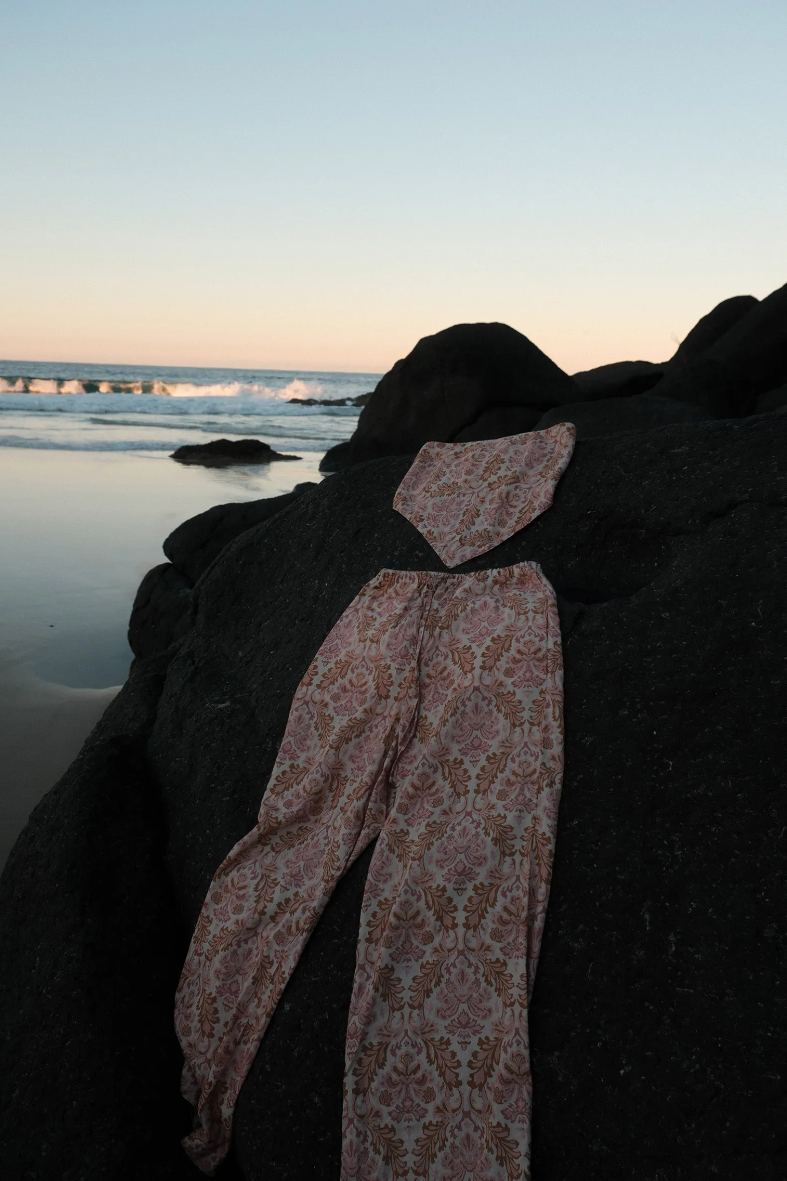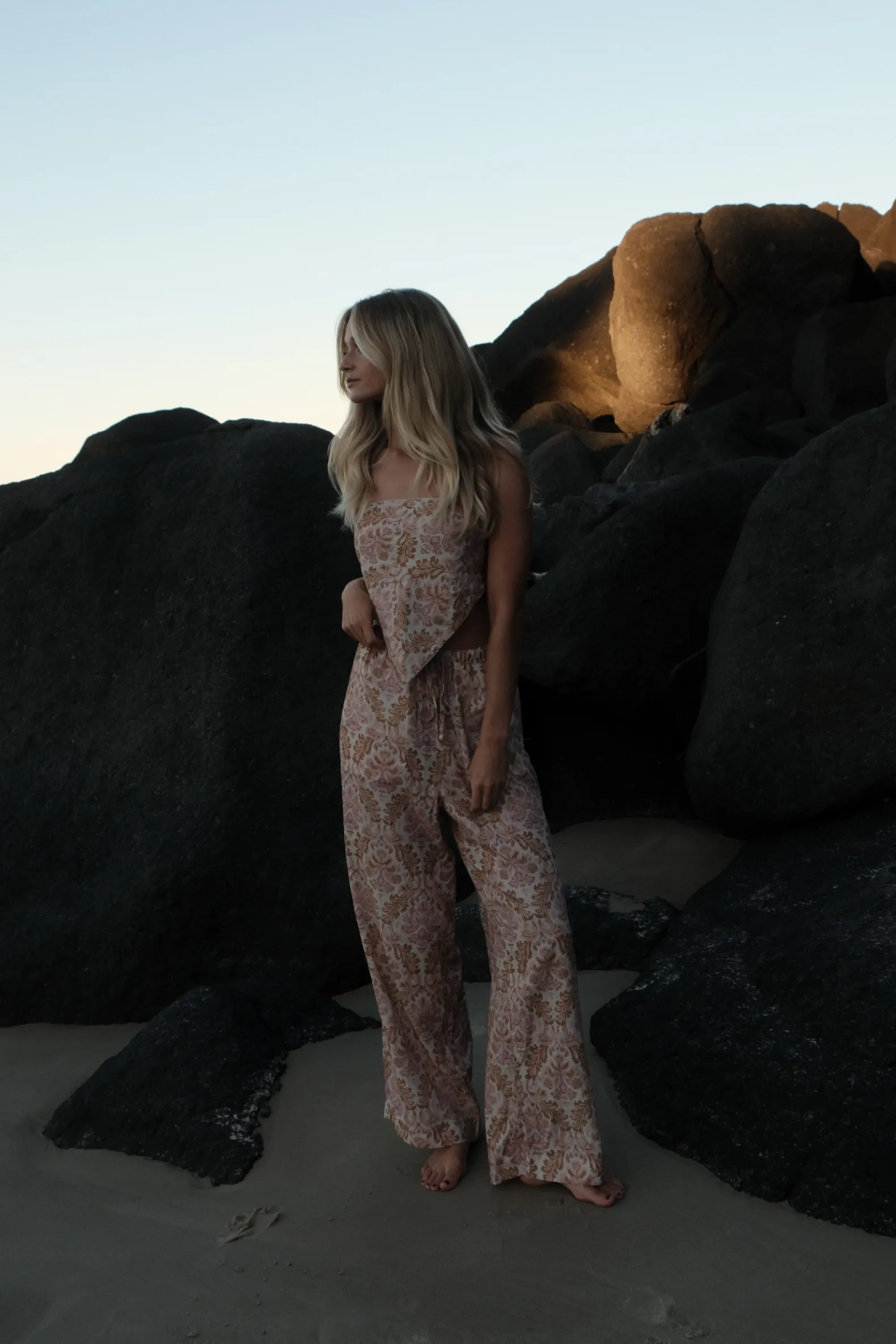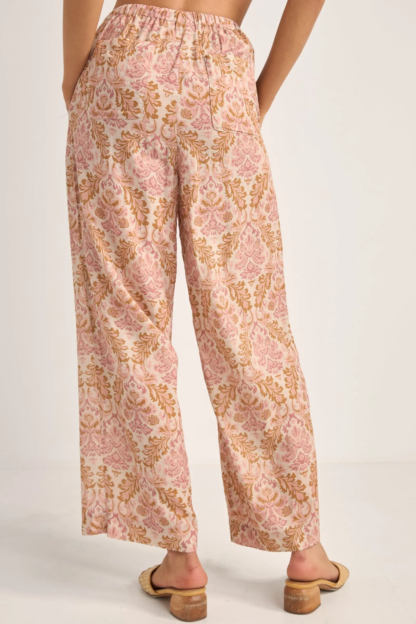 The Jessie Paisley Drawstring Pant in Rose is a breeze to wear. Featuring an easy-to-wear straight leg design with an encased drawstring, these pants combine comfort and style, perfect for your coastal adventure