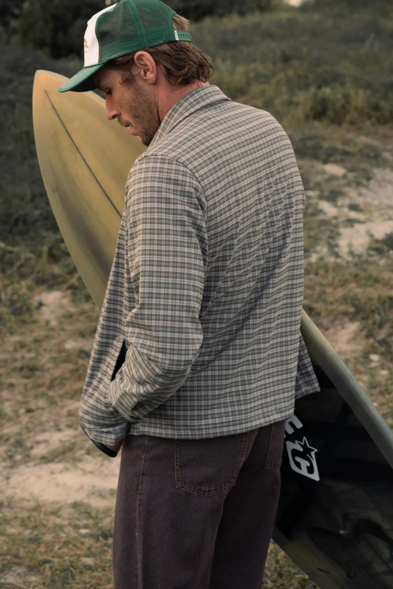 Introducing the Jordy Check Jacket in Blue Check, a lightweight essential for coastal living. Featuring an oversized fit, check print detail, metal zipper closure, side slant pockets, and signature Rhythm trims. Perfect for adding relaxed style to your wardrobe.