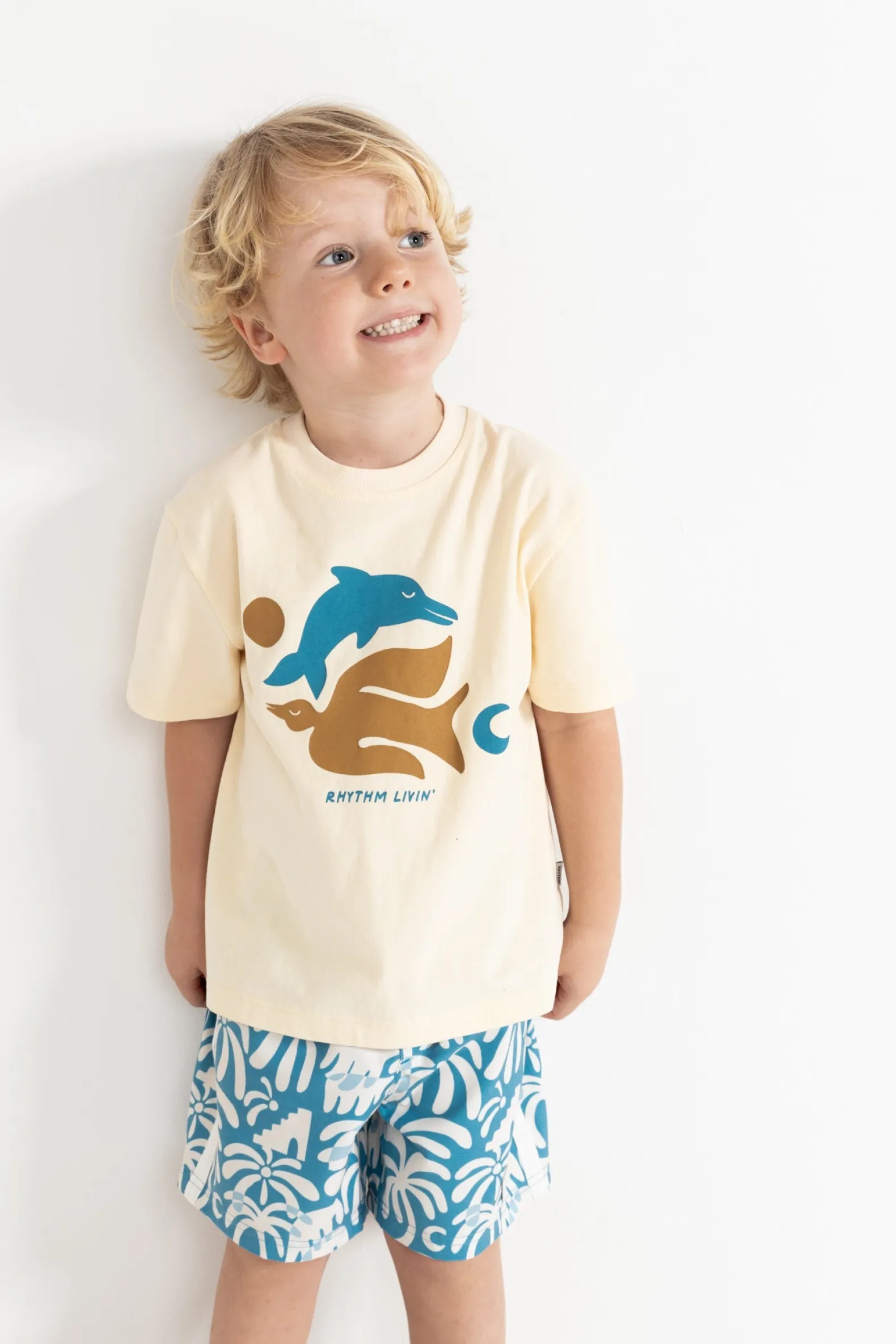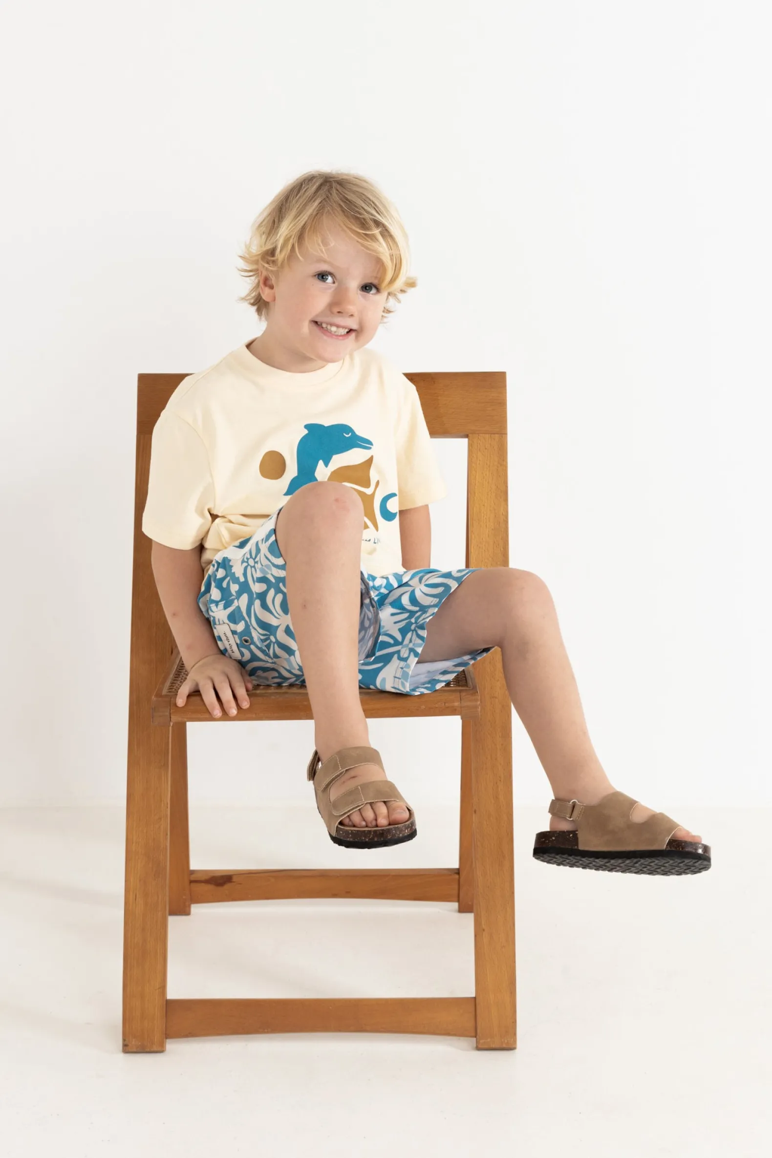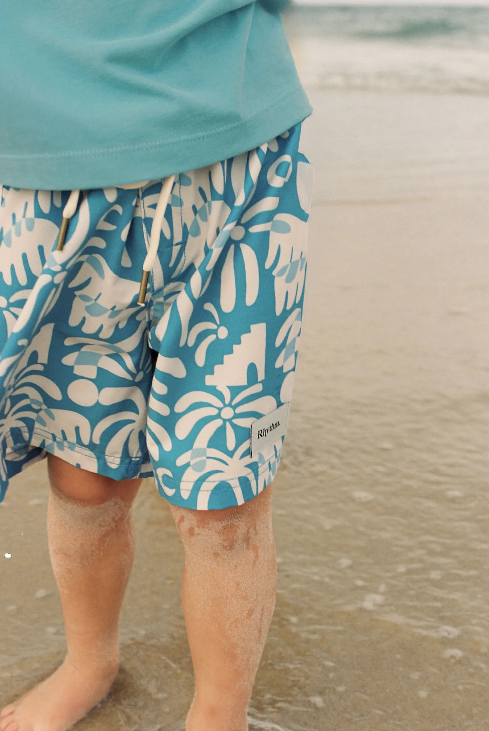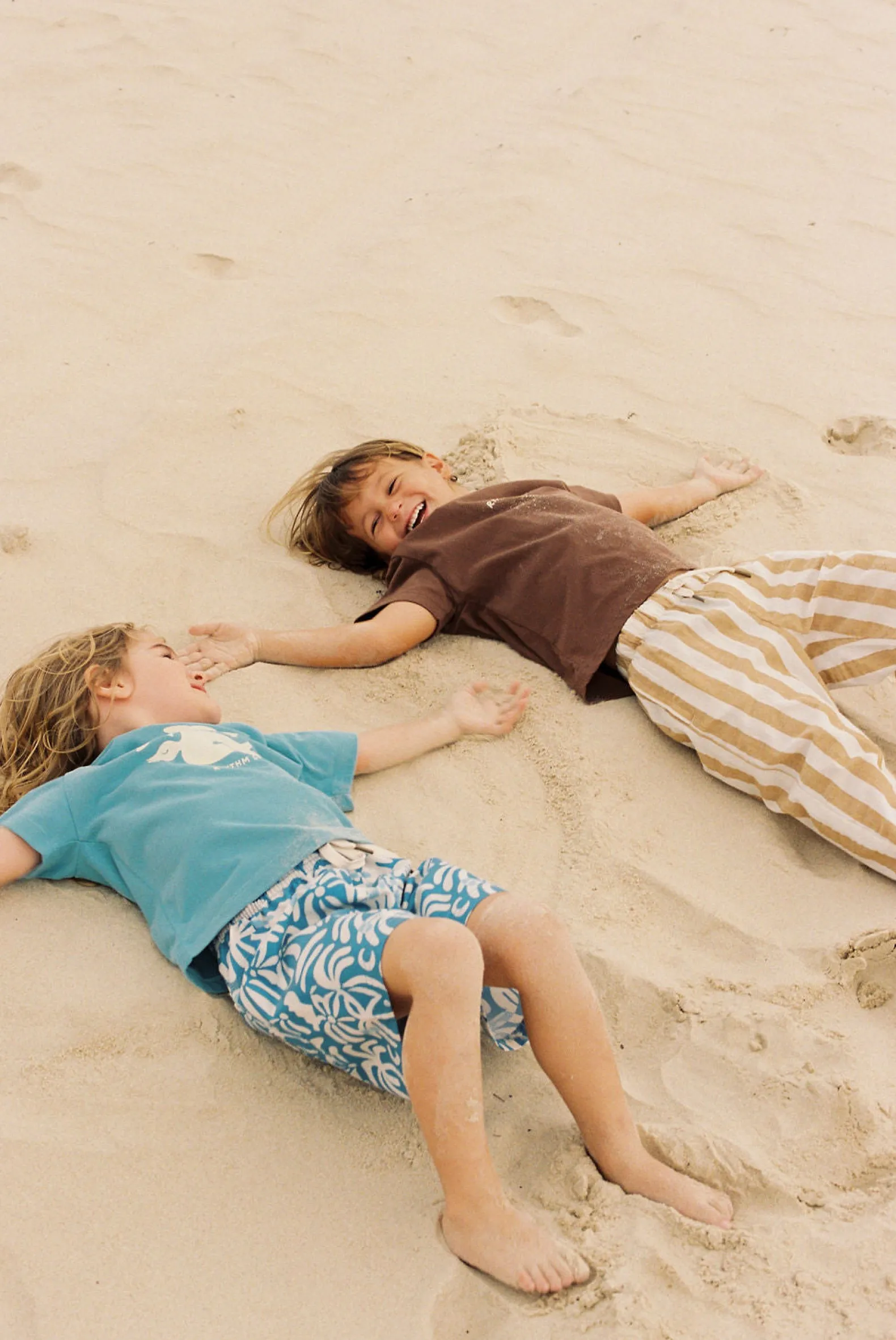 Relaxed-fit elastic-waist shorts in a serene blue hue, crafted for easy movement and carefree play. Perfect for seaside days or backyard adventures.