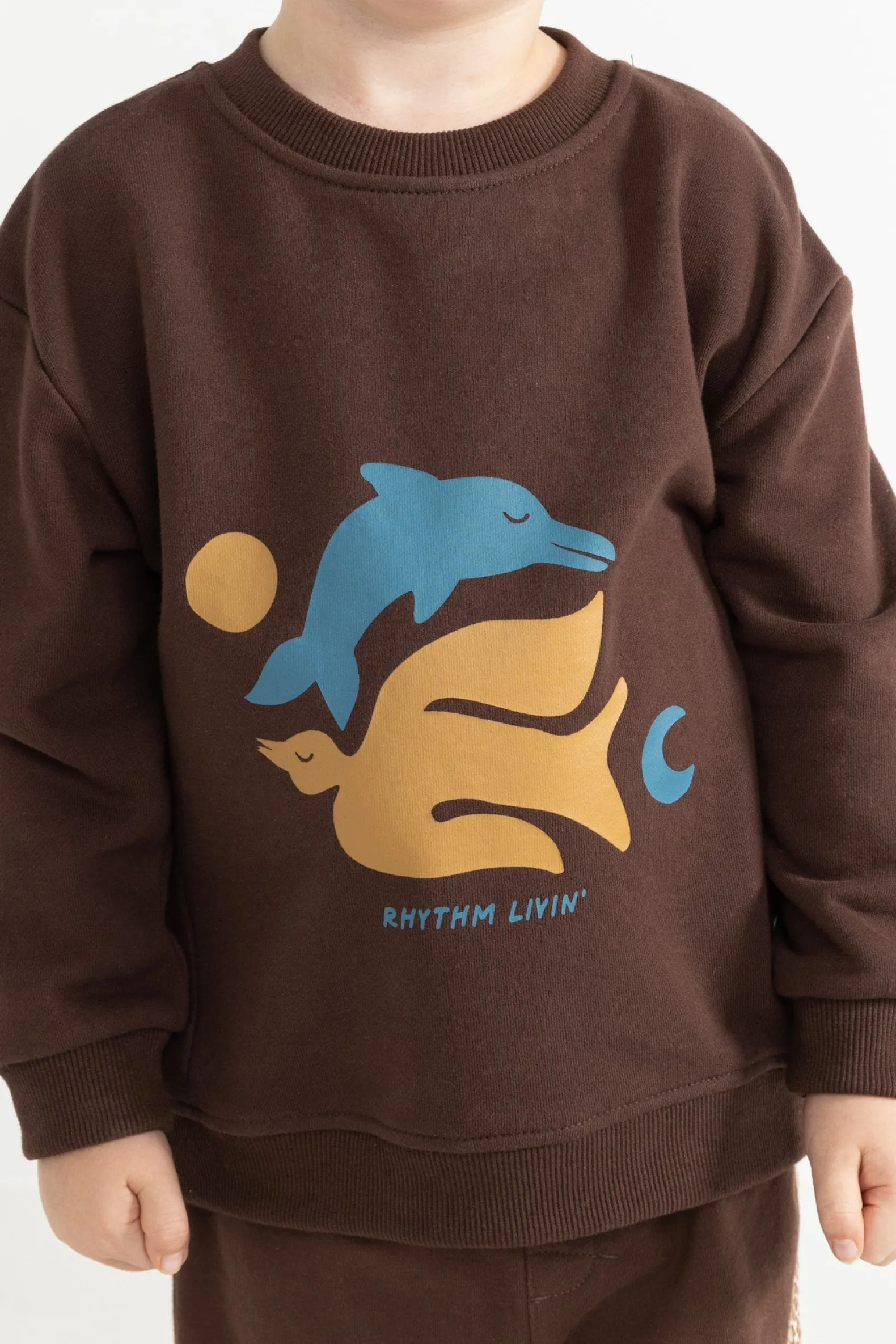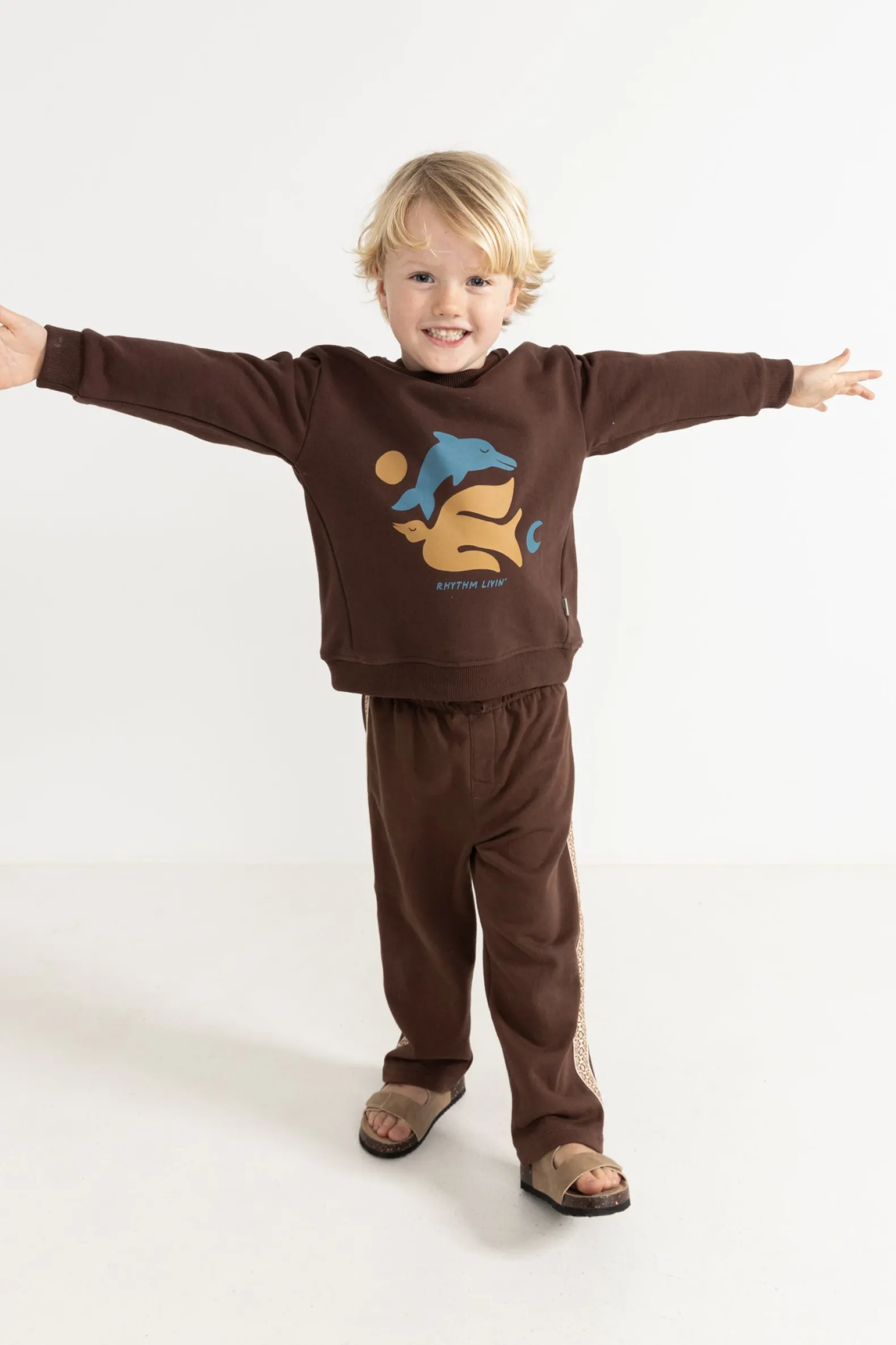 Soft and snug, this terry pullover in a warm earth tone features playful graphic prints that inspire creativity and joy. Perfect for layering on cooler coastal evenings or cozying up at home.