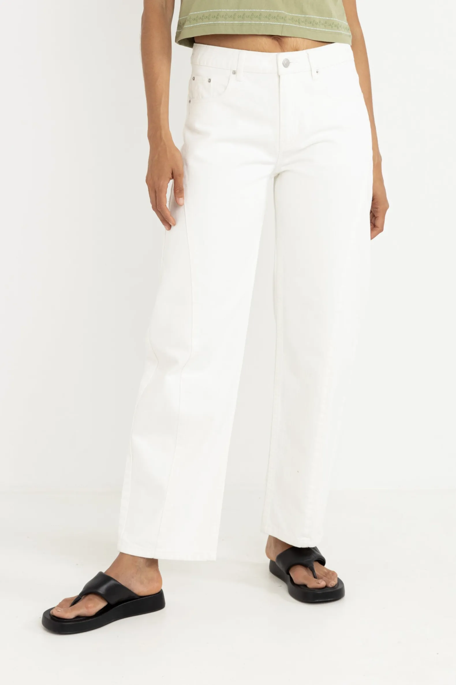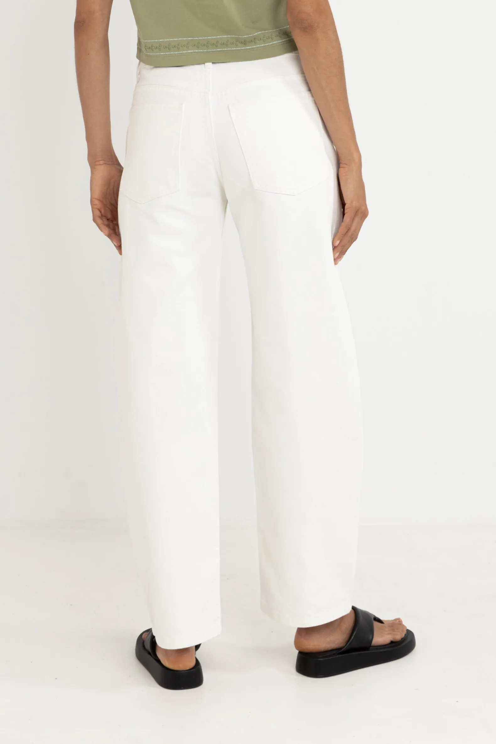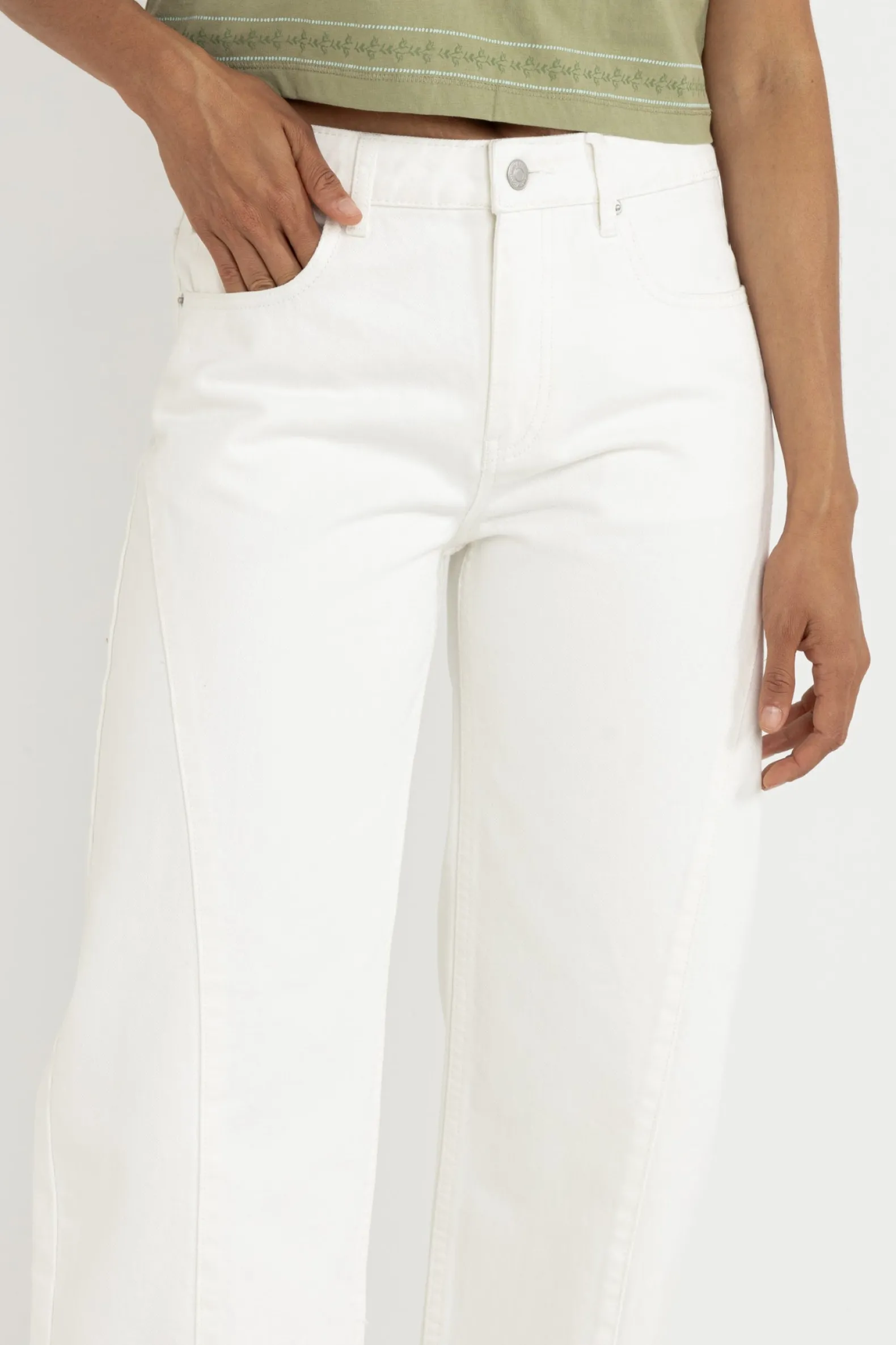 Relaxed yet refined, the Low-Rise Barrel Denim Pant in White features a low-rise fit and subtle side panels. This easy-to-wear style is perfect for a minimalist approach to denim.
