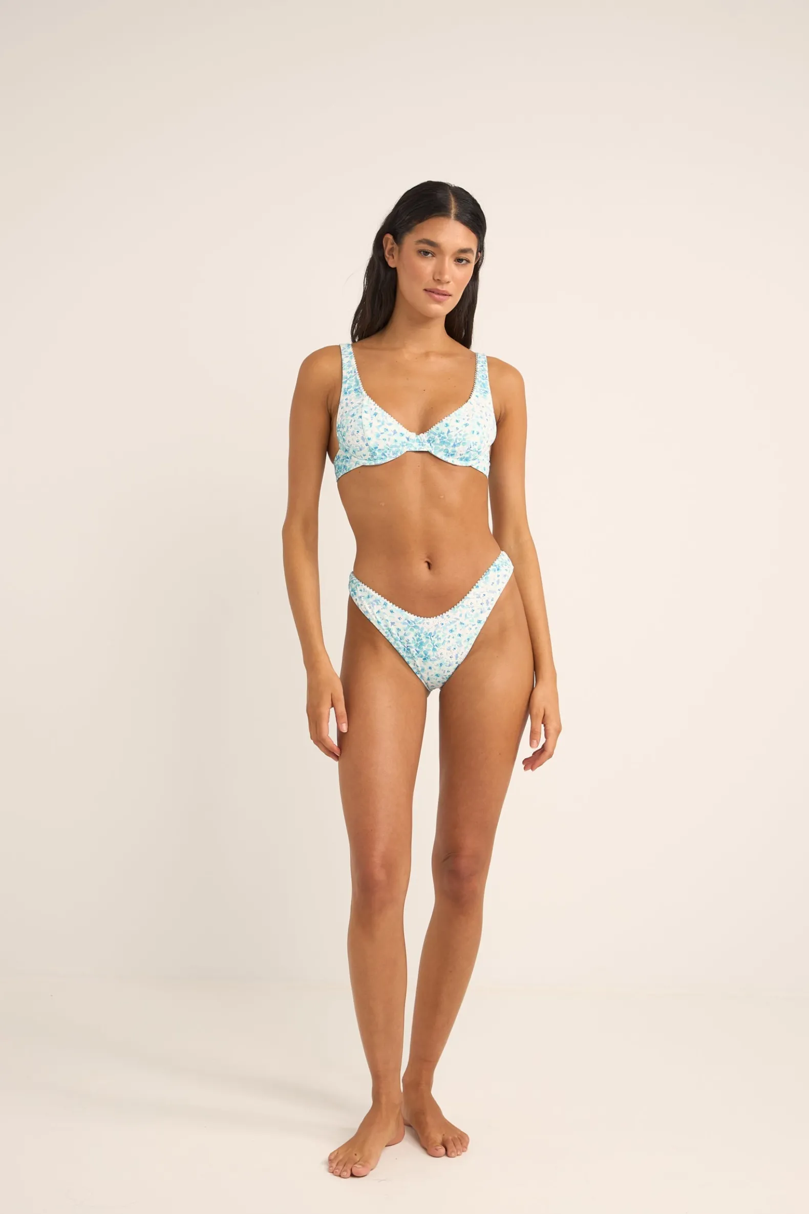 Capture the essence of the shoreline with the Serenity Floral Hi Cut Pant. This brief coverage pant features a high-leg cut and lace trim, all crafted from a recycled bubble textured fabric, making it a perfect match for those who treasure the environment as much as their coastal getaways.