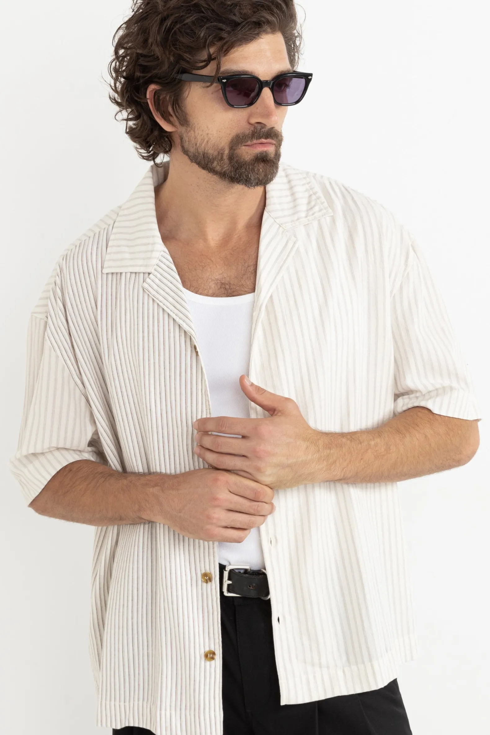 The Stripe Exchange Relaxed SS Shirt in Brown is crafted for easy, breezy styling. Subtle contrast stripes and classic tort buttons lend this shirt a refined, laid-back vibe.