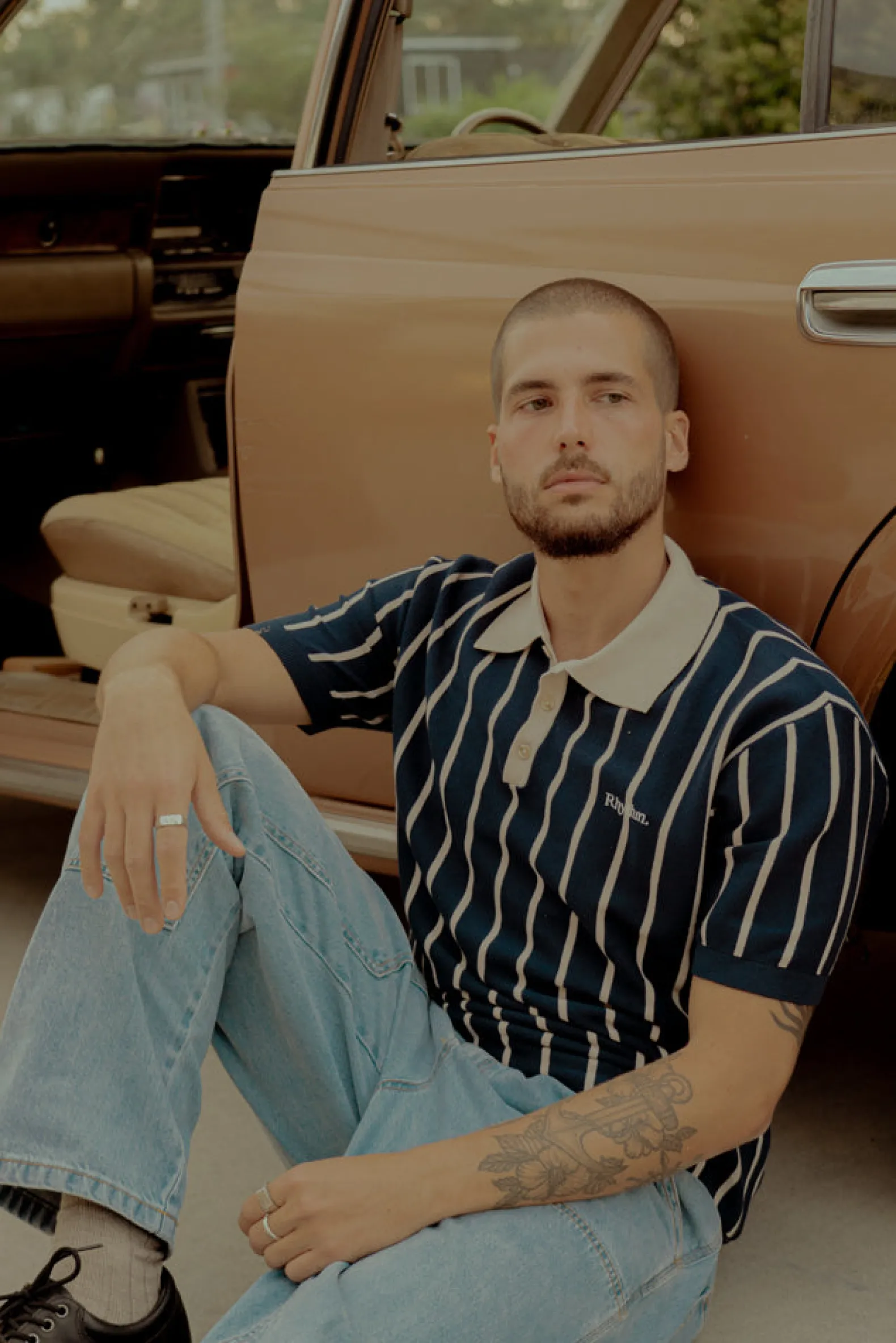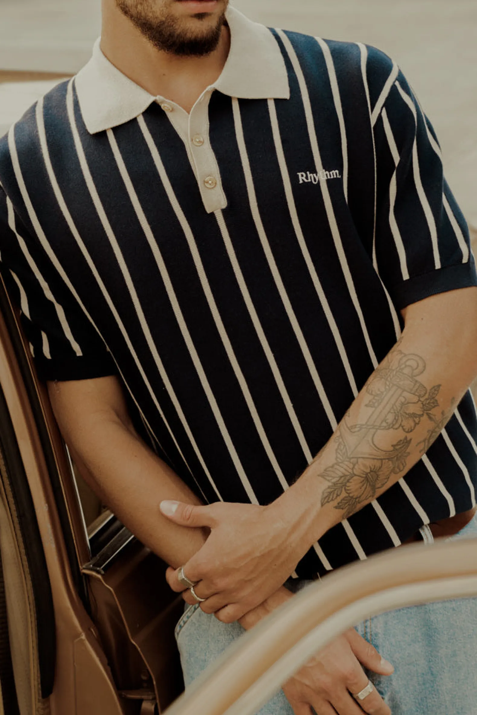 Classic striped polo with a relaxed fit and contrast details. A versatile piece for understated, elevated surf style.